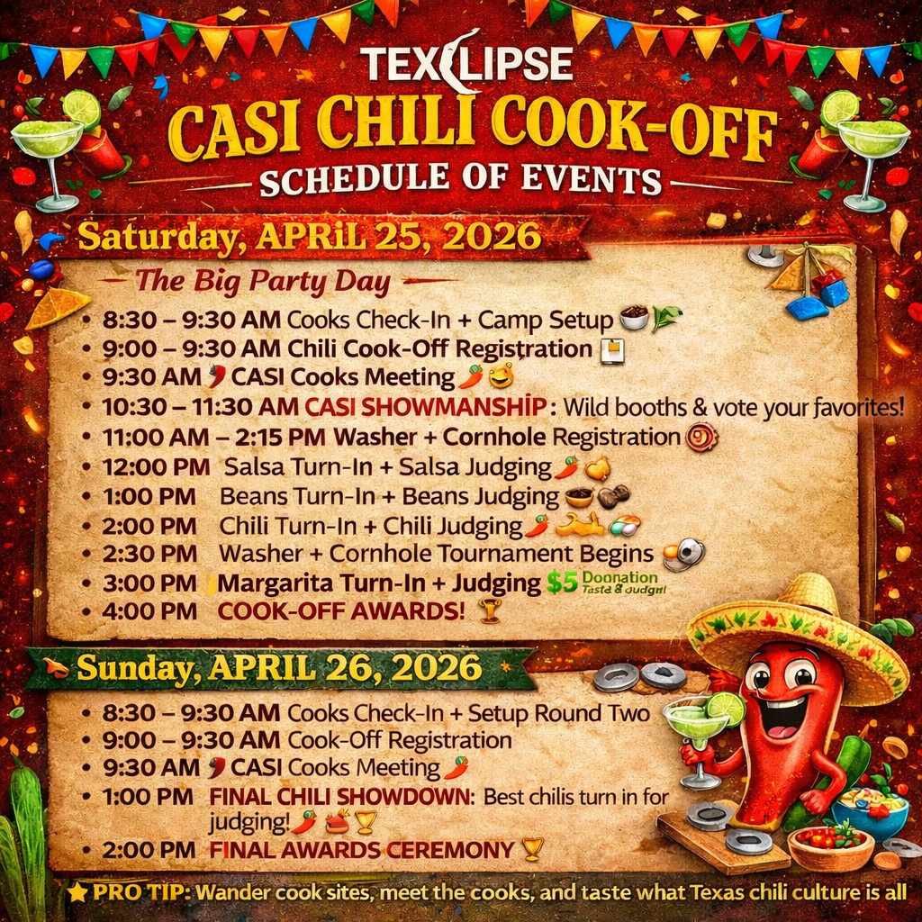 When you cook and participate in our CASI Chili Cook Off, you are helping us fundraise for Texclipse Cares 501c3.